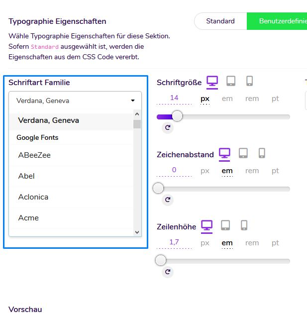 In the configuration you can add your own custom fonts and use them on your Joomla website.
